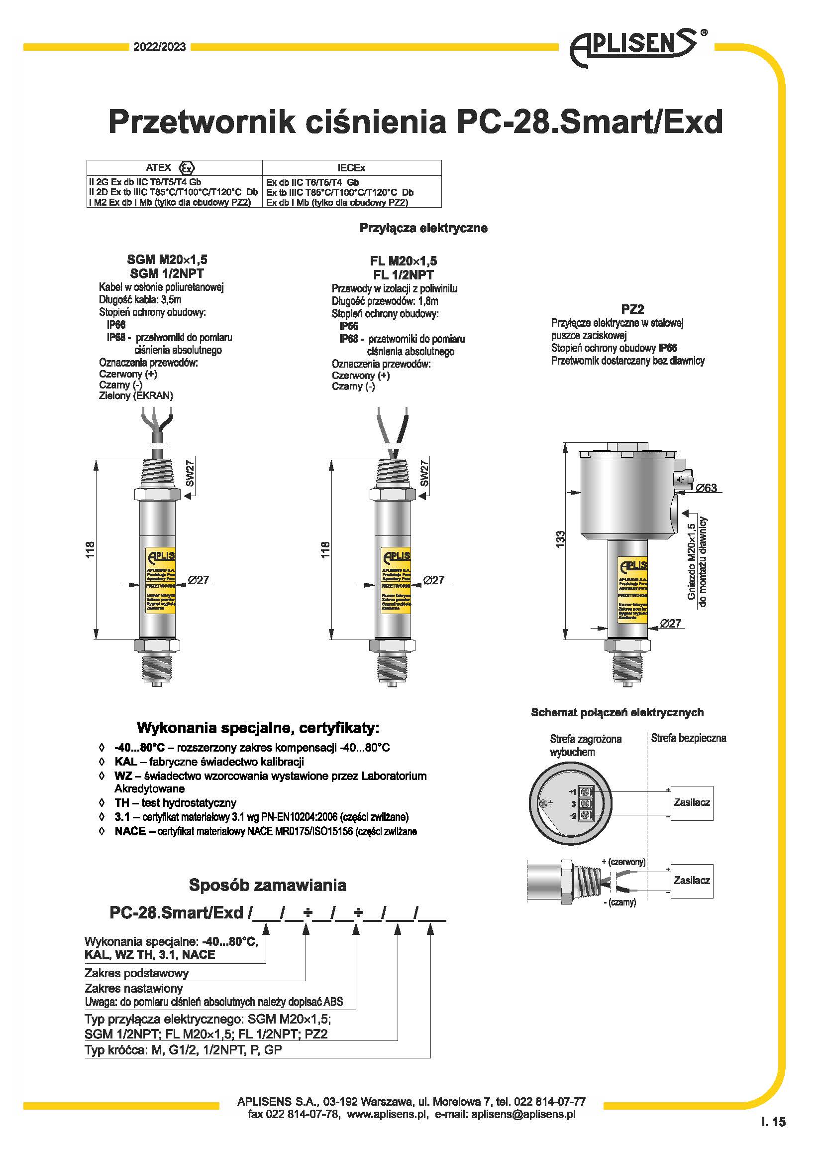 4 ÷ 20 mA輸出信號(hào)+ Hart 協(xié)議。基本誤差0.1%ATEX證書