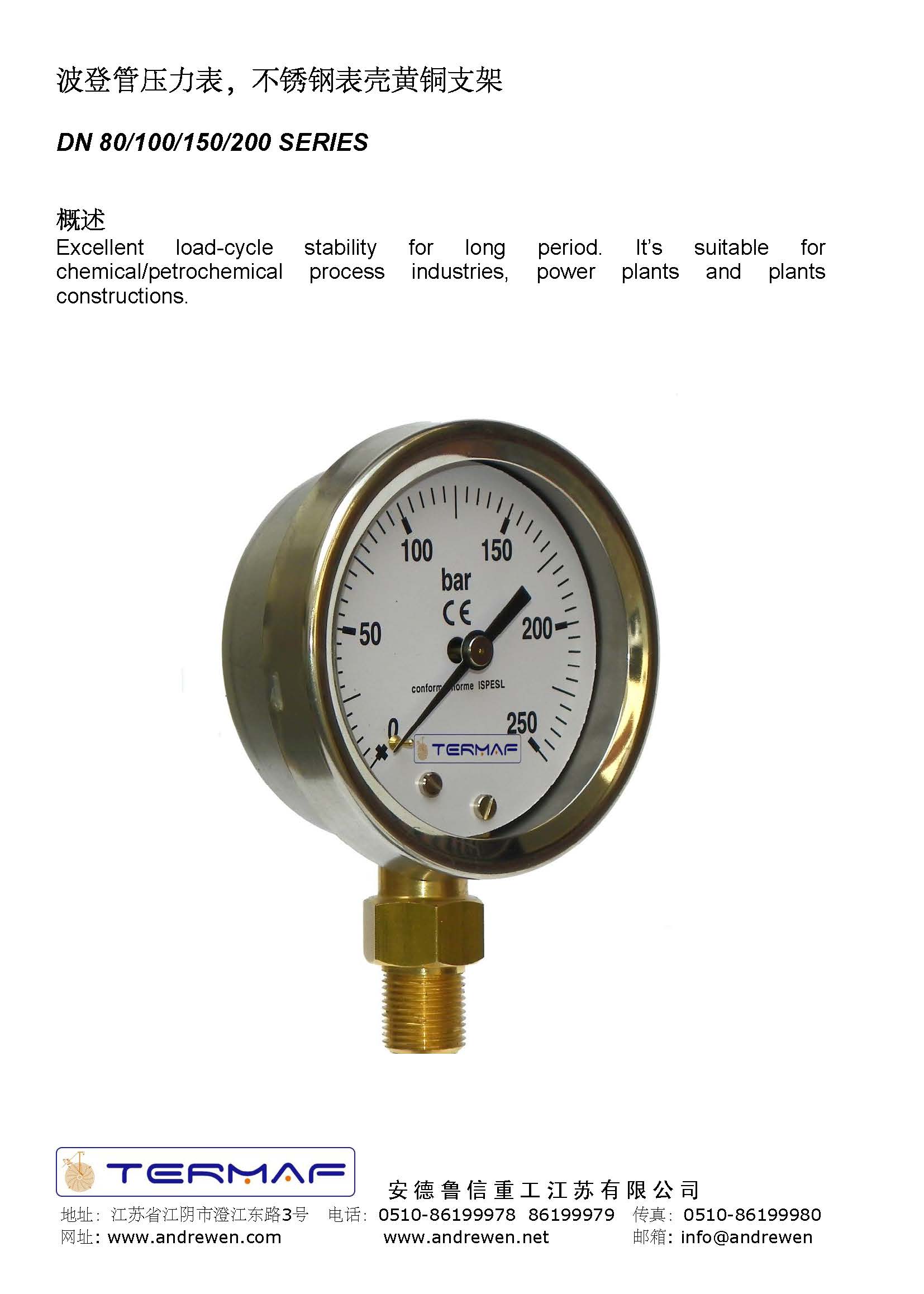 波登管壓力表,不銹鋼表殼黃銅支架-意大利TERMAF