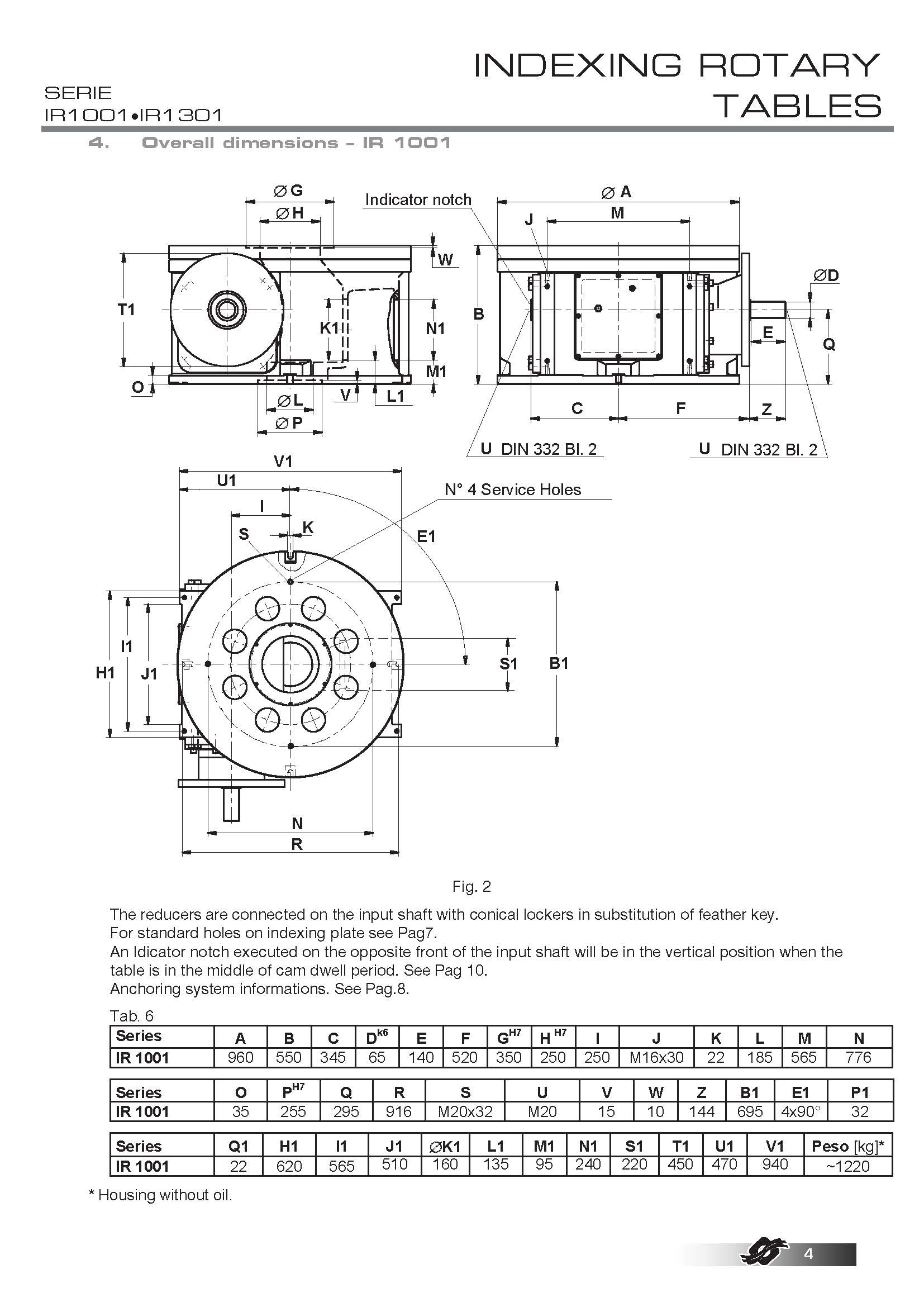 | 凸輪索引周期: | 270° - 300° - 310° - 330° |
