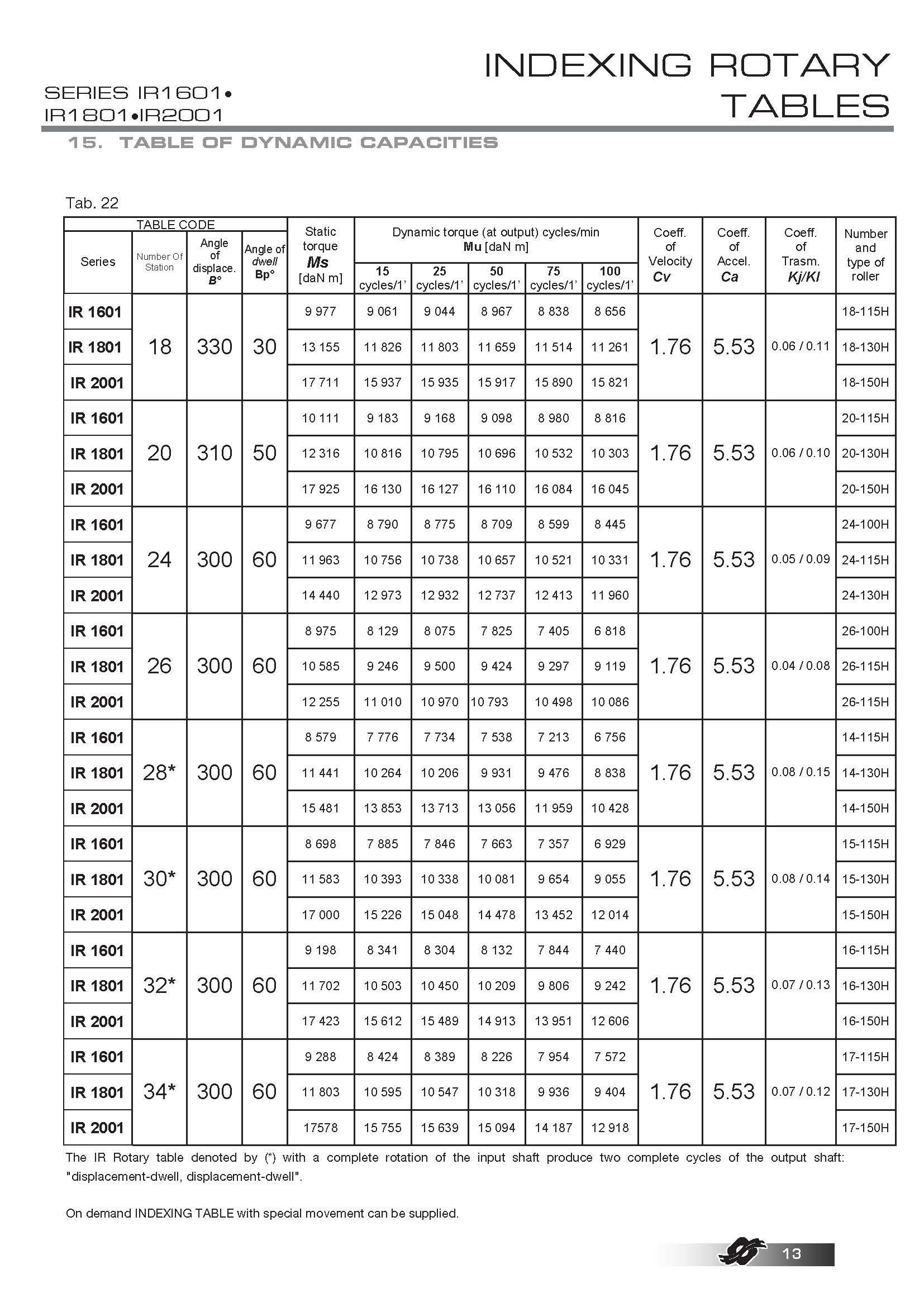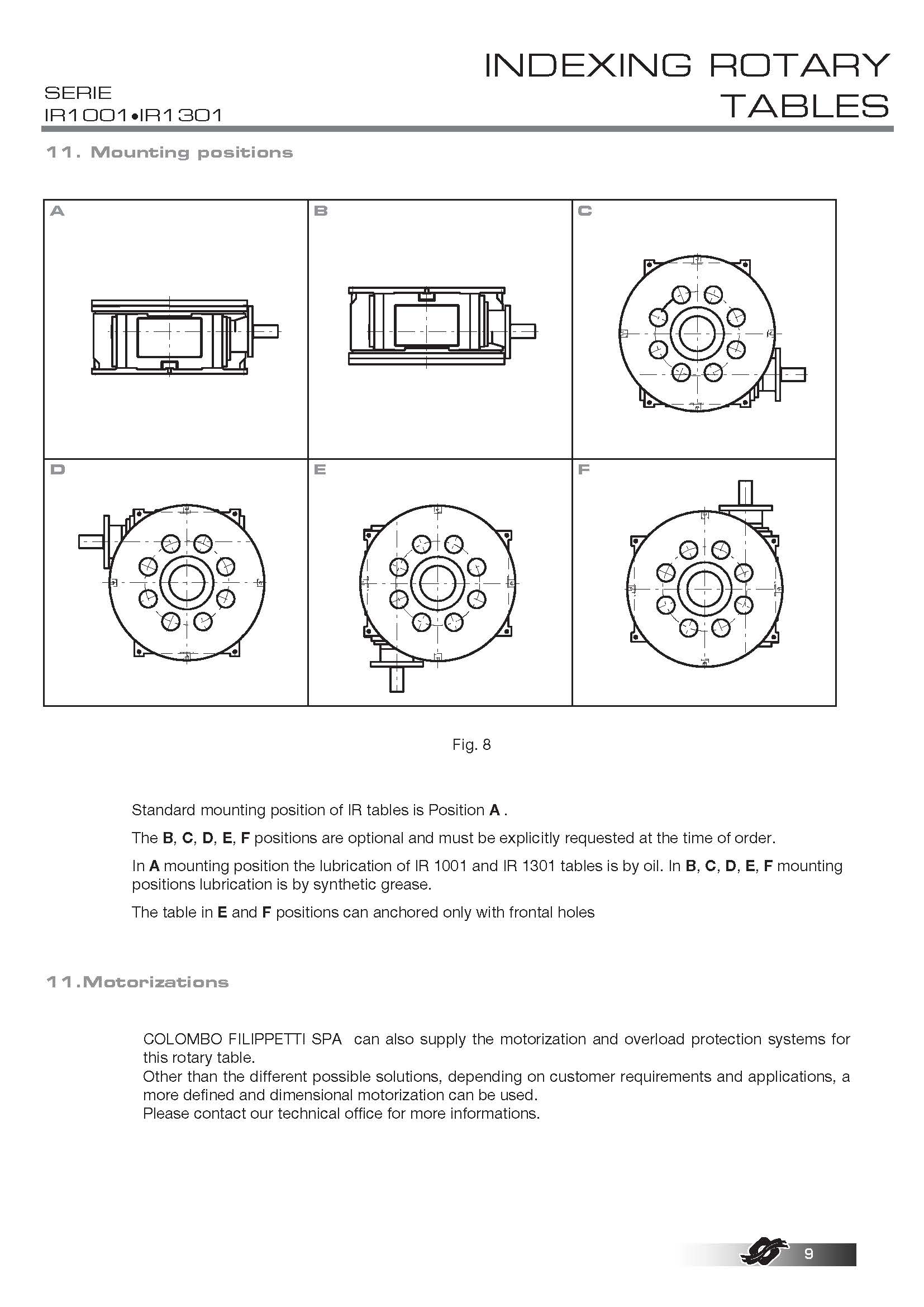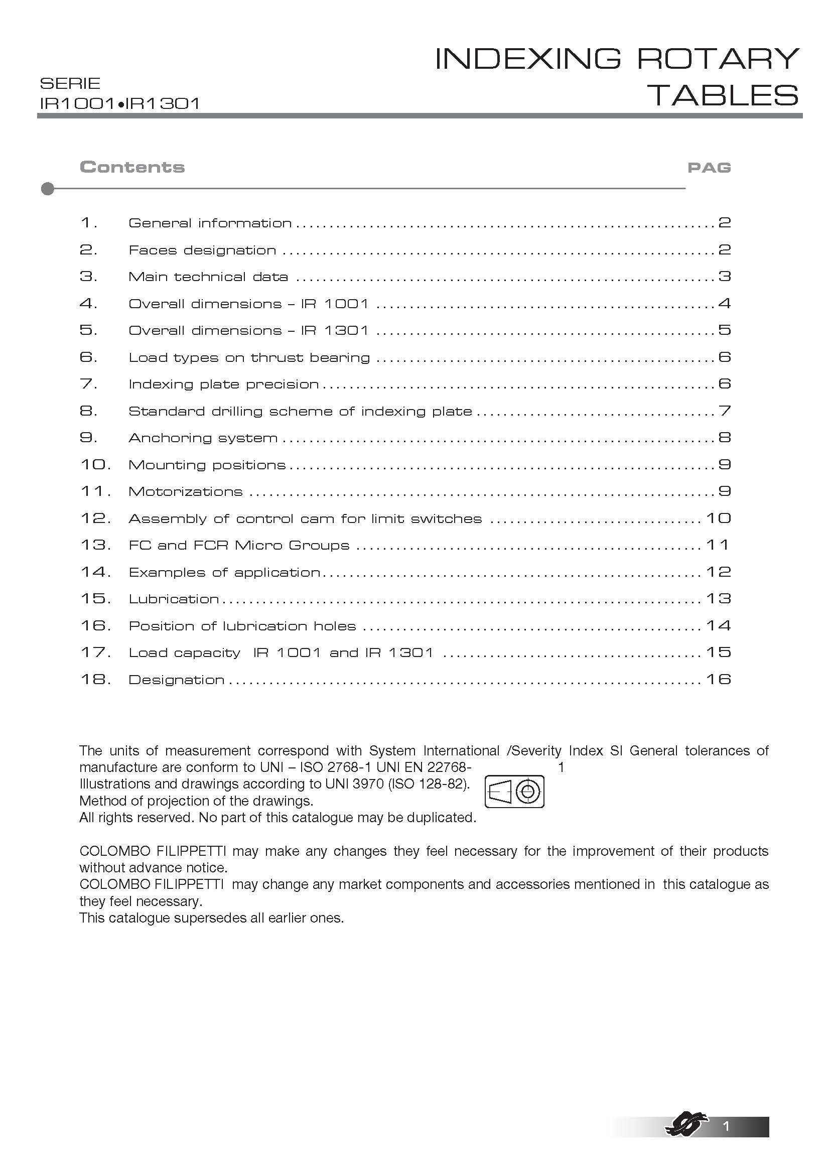 COLOMBO FILIPPETTI spa "IR" Minindex 系列的分度轉(zhuǎn)臺是圓柱形凸輪機械裝置,可將輸入軸的勻速旋轉(zhuǎn)運動轉(zhuǎn)換為輸出表盤的分度旋轉(zhuǎn)運動。