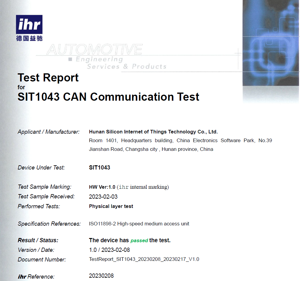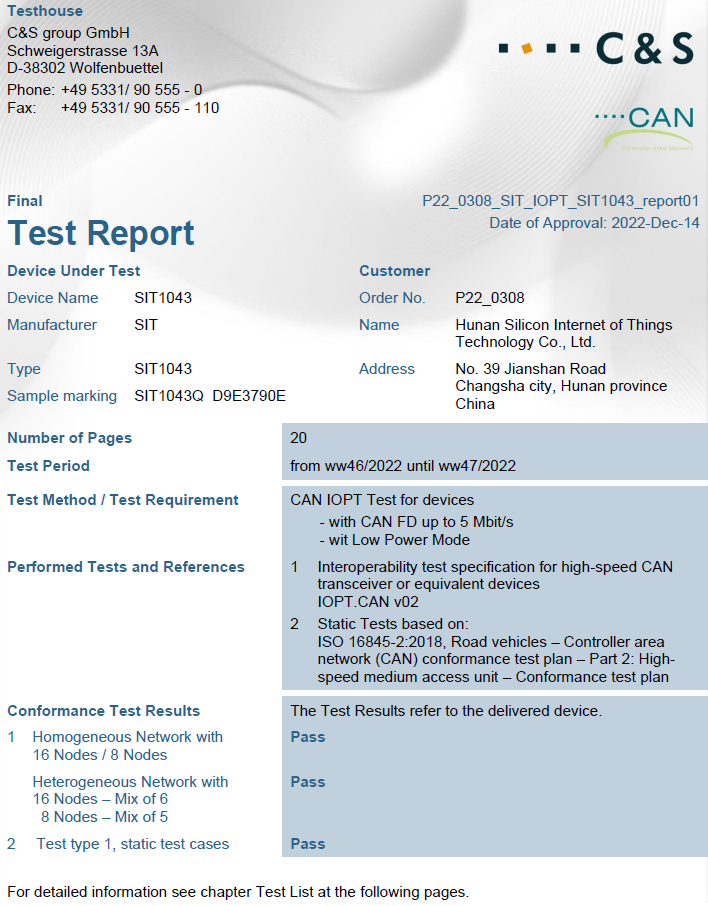 三、SIT1043Q CAN收發器通過德國C&S兼容性測試