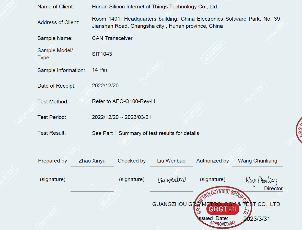一、SIT1043Q CAN收發器通過第三方實驗室AEC-Q100認證