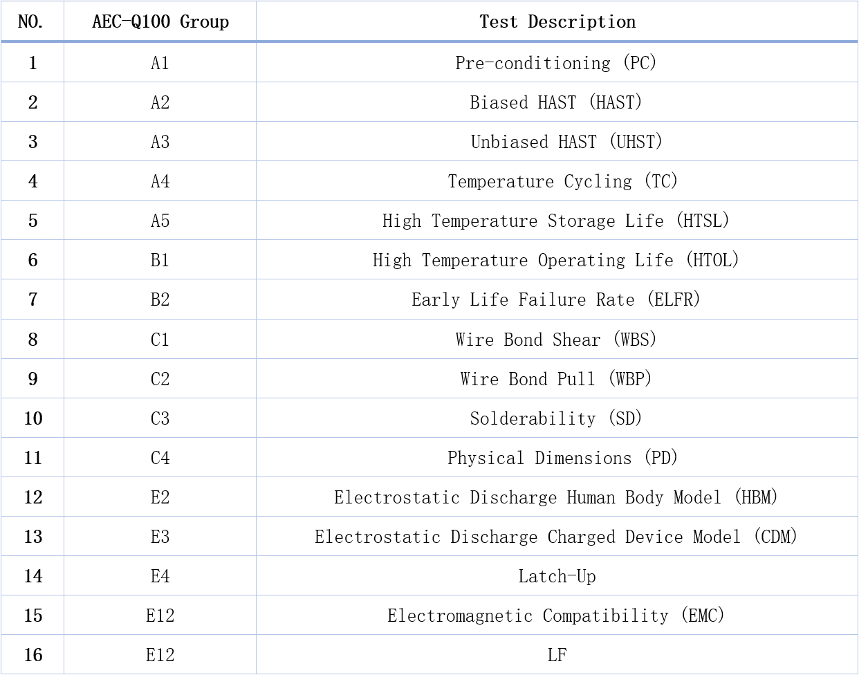 SIT1043Q CAN收發器AEC-Q100測試內容匯總如下表所示。